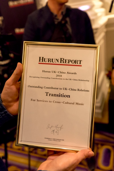 Last night Transition were honoured to win a Hurun award for services to 'Cross-Cultural Music'!